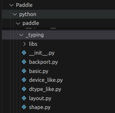 具体到 _typing 模块,其本身作为 Paddle 的一个私有模块放置于 python/paddle 目录下: